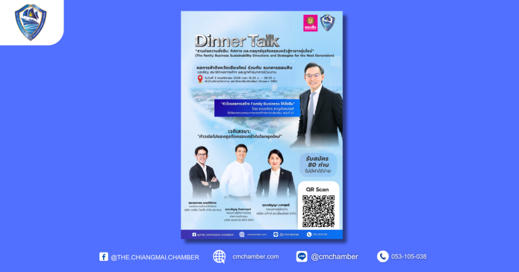 ข่าวประชาสัมพันธ์Dinner Talk “สานต่อความยั่งยืน: ทิศทาง และกลยุทธ์ธุรกิจครอบครัวสู่ทายาทรุ่นใหม่” Leave a Comment   ข่าวประชาสัมพันธ์   ประชาสัมพันธ์